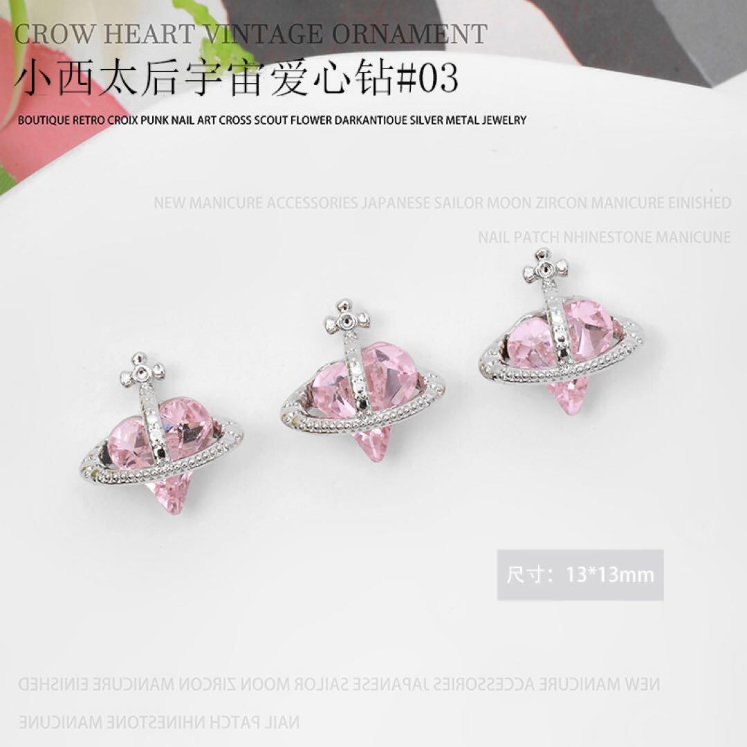 P979(2個)ネイルパーツ ピンク 惑星 ハート キラキラ ギャル デカパーツ