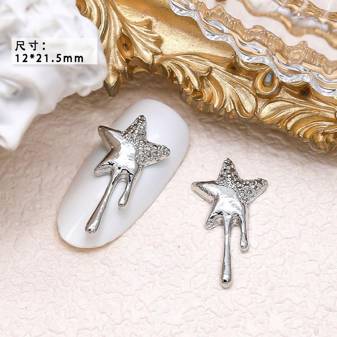 P986(2個)ネイルパーツ シルバー 星 スター デカパーツ 溶ける 垂れる