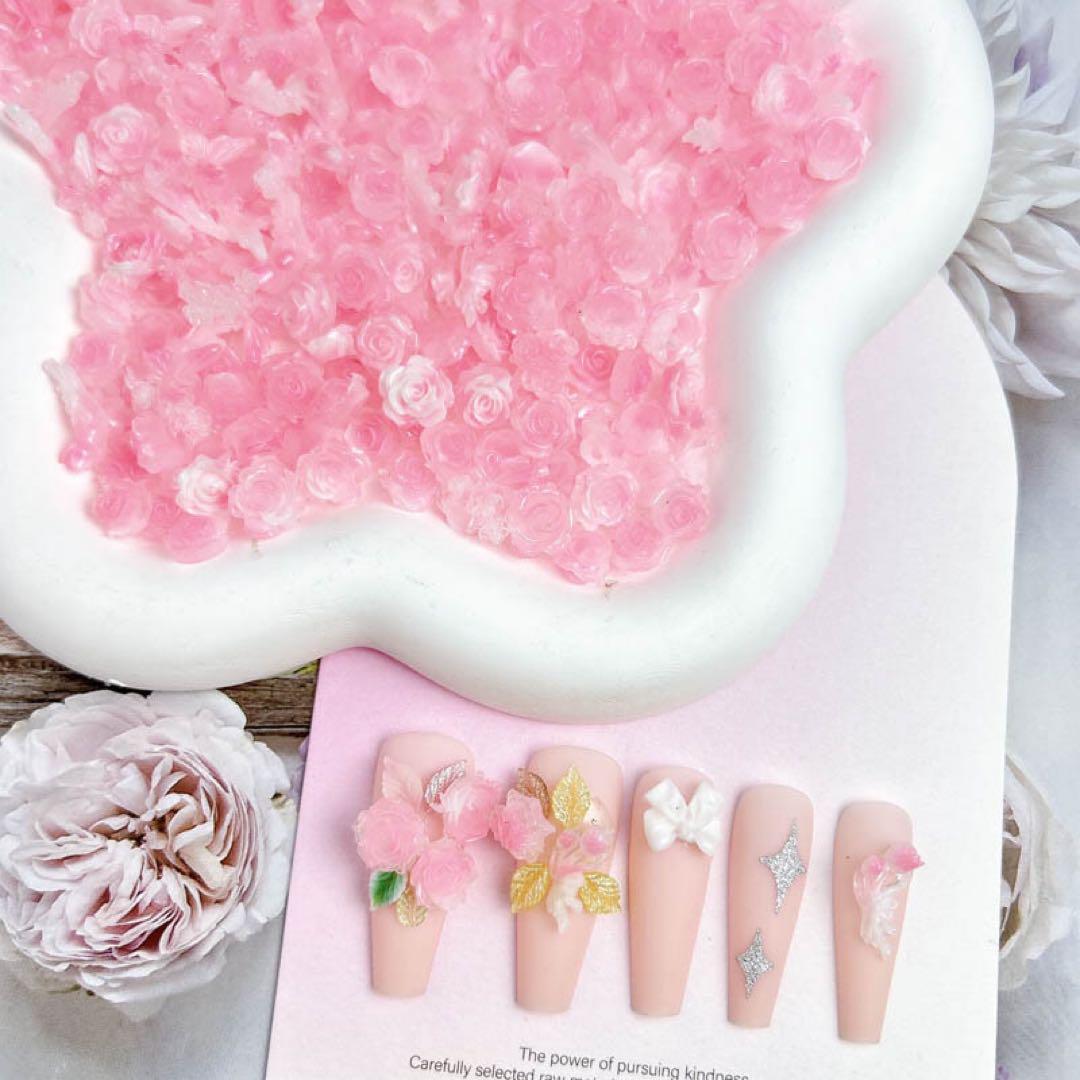 P1020(ランダム10個)ネイルパーツ ピンク 蓄光 光る 薔薇 ばら 蝶々