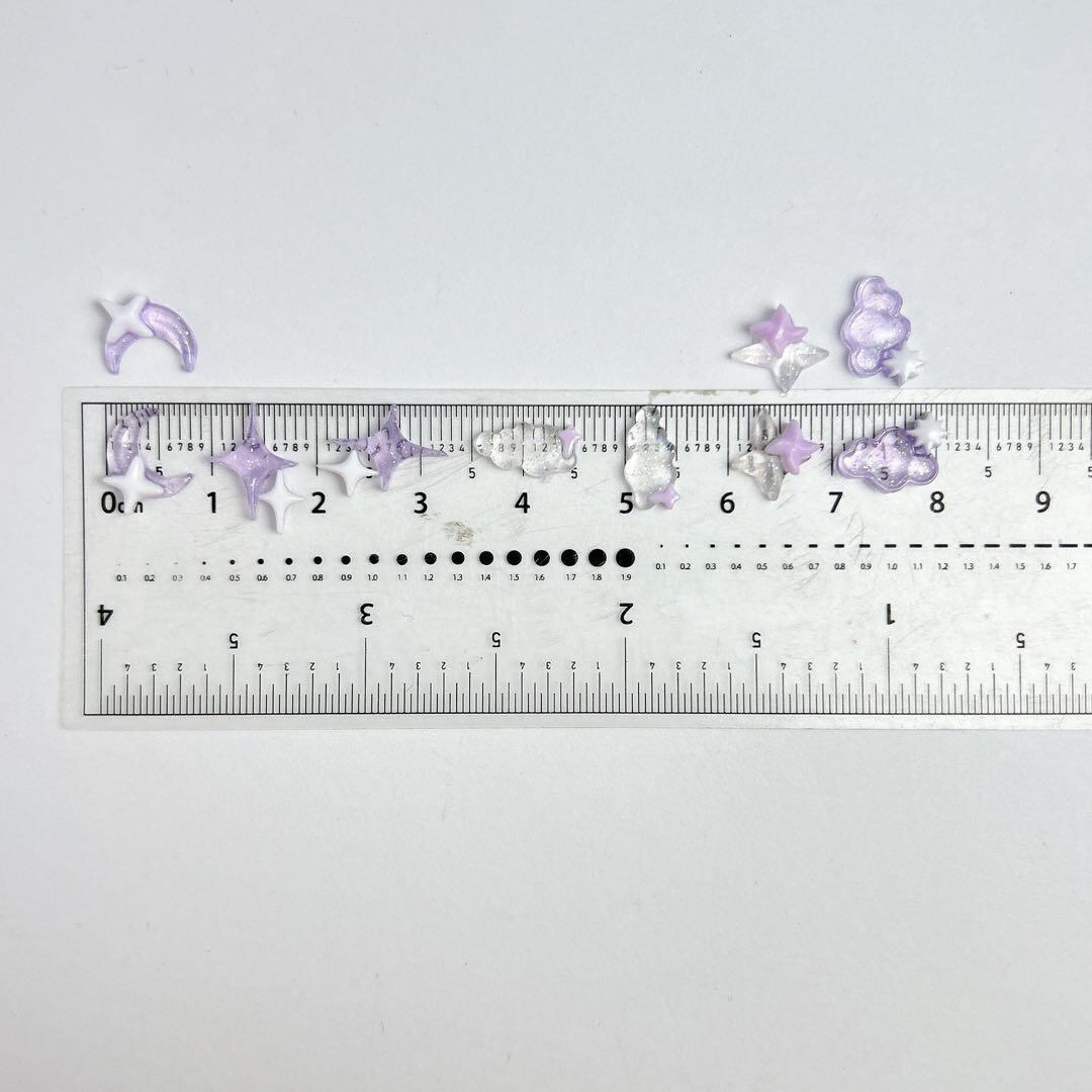 P1029(ランダム10個)ネイルパーツ 雲 星 月 紫 クリア 光る 蓄光