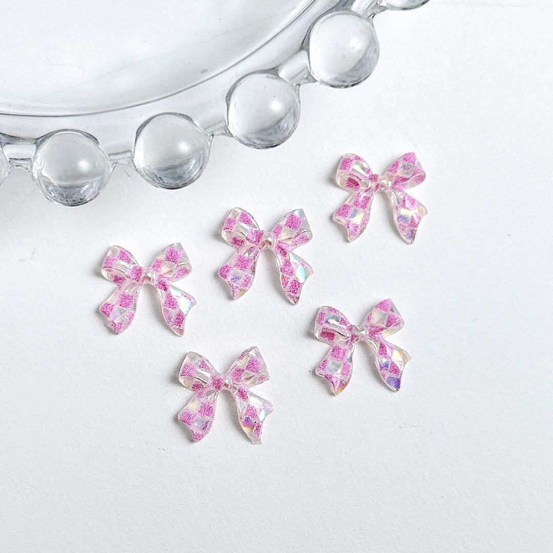 P1054(5個)ネイルパーツ ピンク リボン チェック柄 韓国ネイル クリア