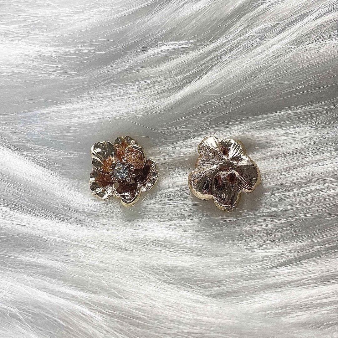 P1092(2個)ネイルパーツ 金色ゴールド 成人式 お花 アンティーク 和風