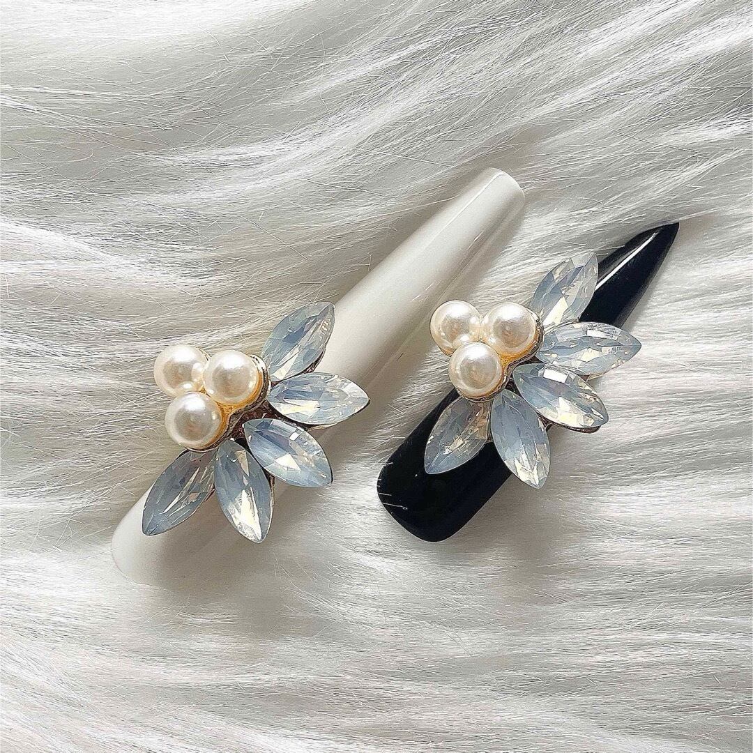 P1101(1個)ネイルパーツ お花 デカパーツ 成人式 キラキラ 水色 パール