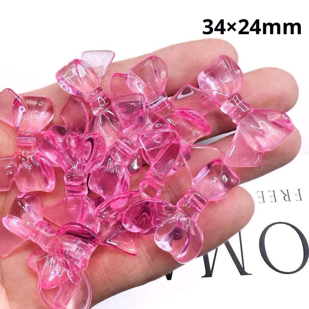 P1111(2個)ネイルパーツ 濃いピンク 透明 クリア リボン デカパーツ