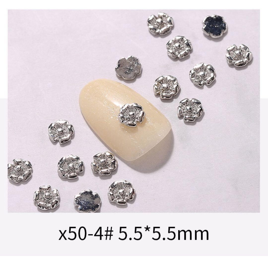 P1118(4個)ネイルパーツ 銀色 シルバー 桜 お花 和風和柄 成人式ネイル 前撮り フラワー アンティーク