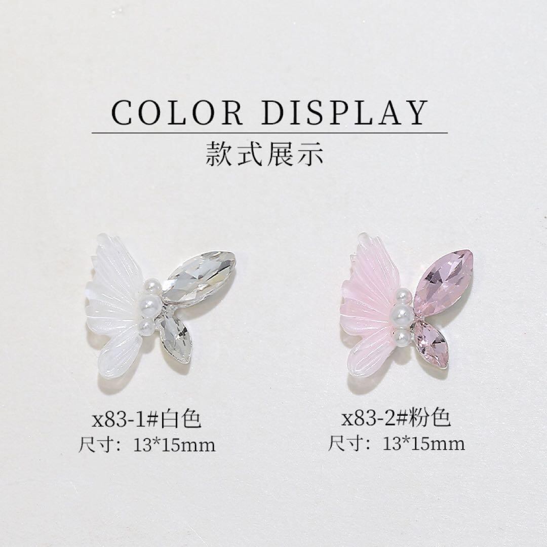 P1123(2個)ネイルパーツ 白 蝶々 クリスタル キラキラ 韓国ネイル ストーン ワンホン ホワイト ビジュー