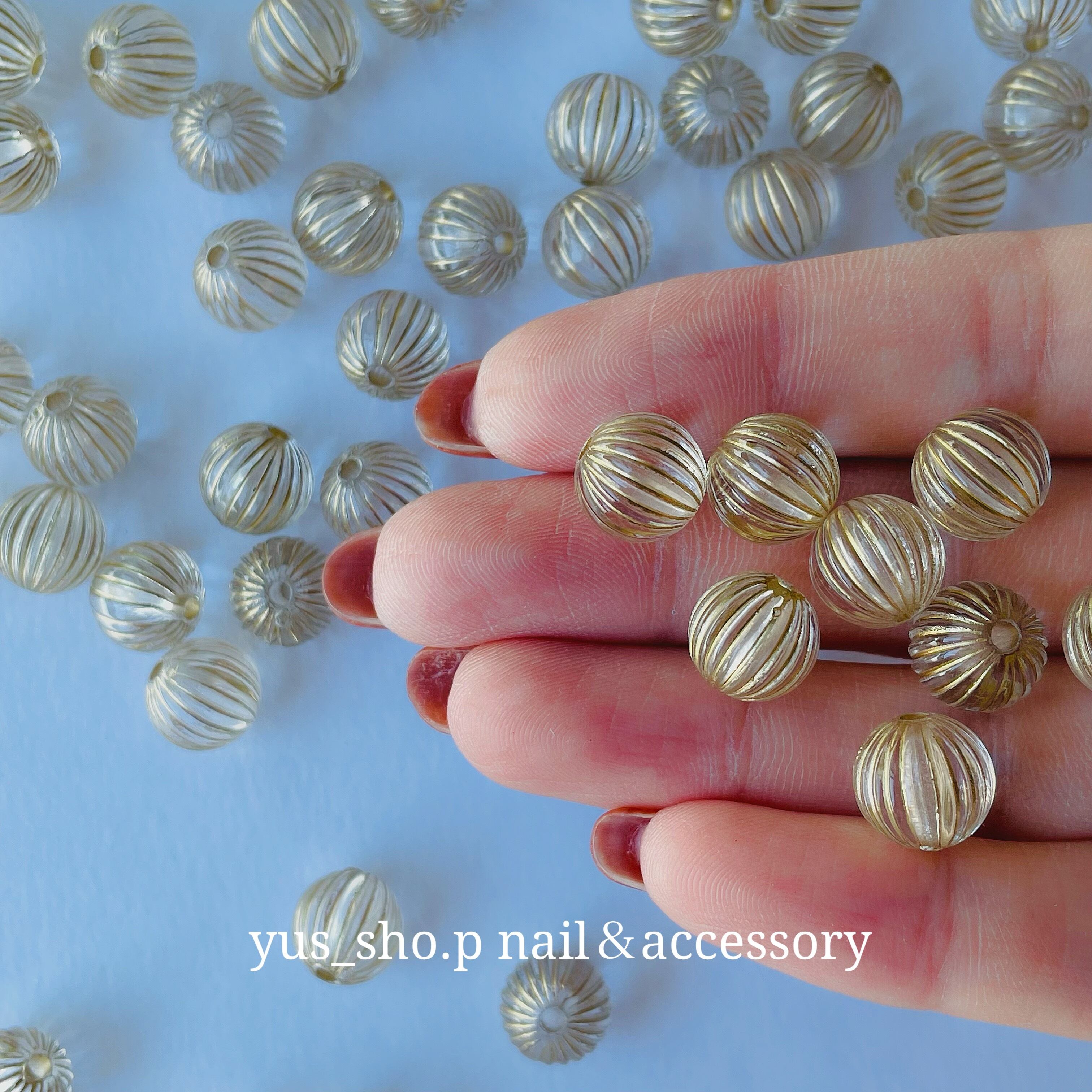 PT029《40個》アクリルビーズ クリアゴールド ラウンド 丸 透明感 春夏 使いやすい 金