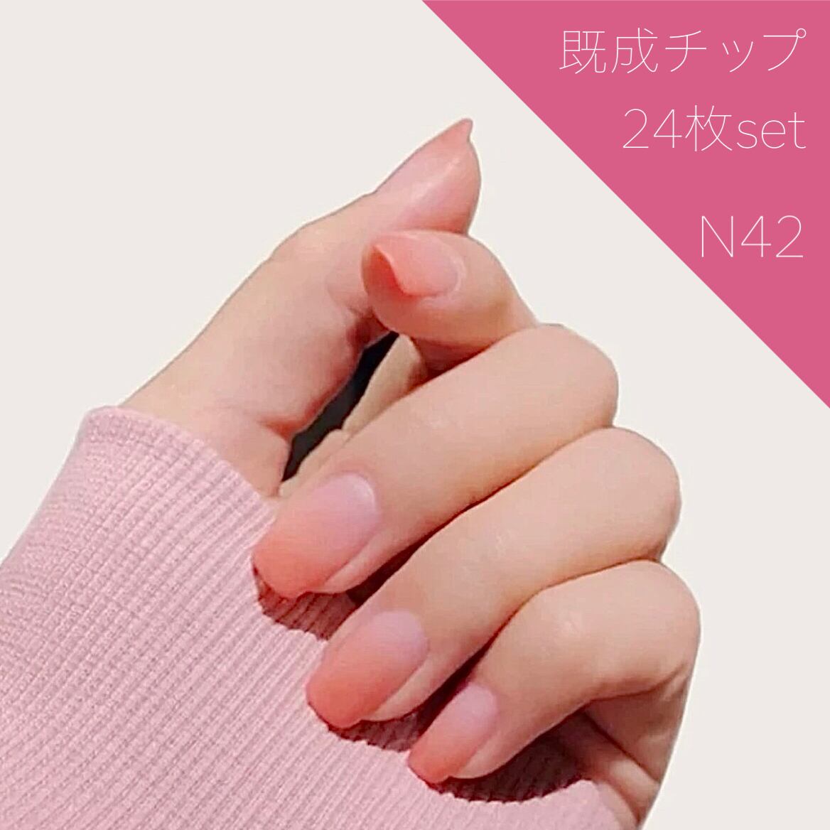 《N42》既成ネイルチップ24枚セット オレンジマット グラデーション ショート