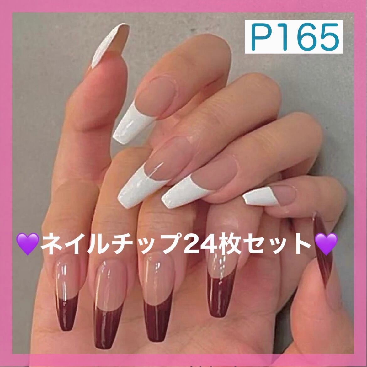 《N165》既成ネイルチップ24枚セット フレンチ 白 ボルドー 赤 成人式