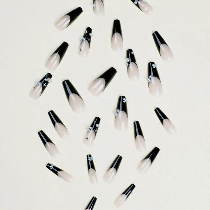 《N218》既成ネイルチップ24枚セット 黒 フレンチ パール ゆめかわ ギャル
