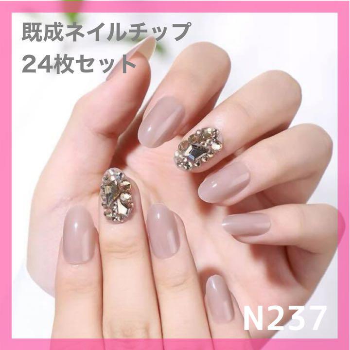 《N237》既成ネイルチップ24枚セット ベージュ 短め ショート 埋めつくし