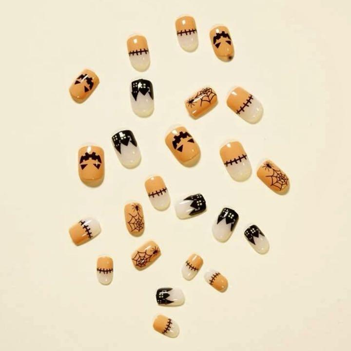 《N306》既成ネイルチップ24枚セット オレンジ ハロウィン 短め ショート