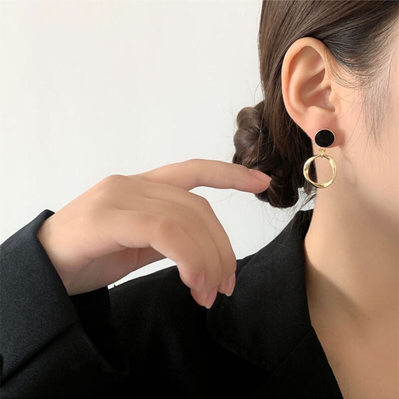 p22《ピアス》ブラック ゴールド 黒 フープ オフィス シンプル 大人可愛い
