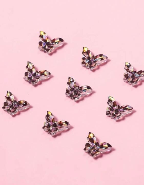 P58《2個》ネイルパーツ 蝶々 バタフライ オーロラ 黒 クリア 韓国 量産型