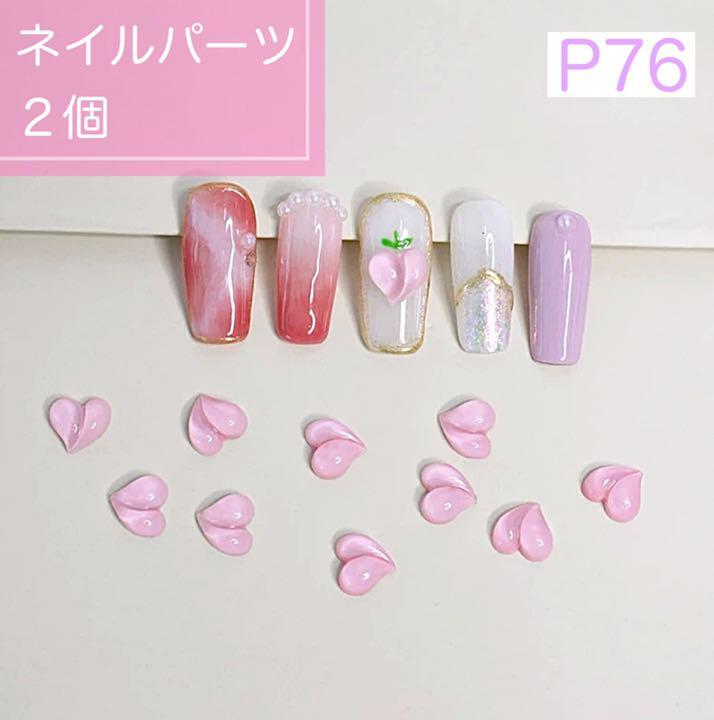 P76《2個》ネイルパーツ 桃 もも フルーツ 果物 ハート ポップ ゆめかわ
