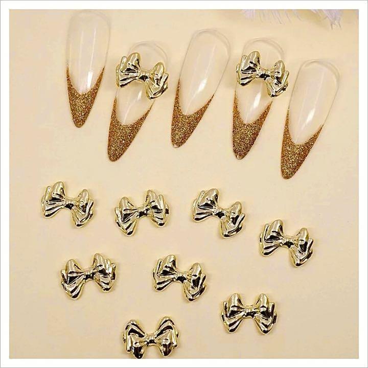 P223《2個》ネイルパーツ リボン シルバー メタリック 韓国 量産型 ギャル