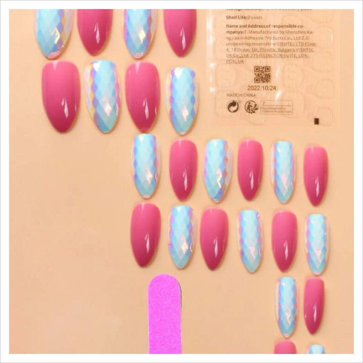 《N409》既成ネイルチップ24枚セット ピンク シンプル オーロラ ギャル