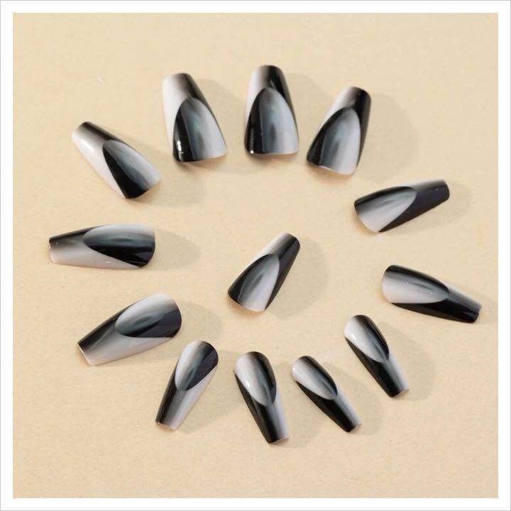 《N427》既成ネイルチップ24枚セット 白黒 オンブレフレンチ ギャル 大人
