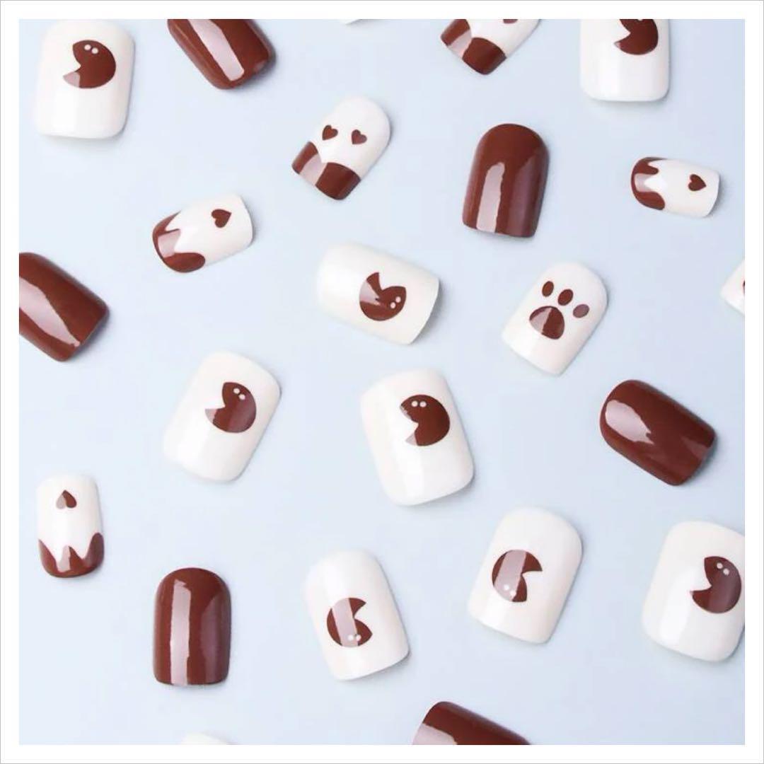《N447》既成ネイルチップ24枚セット ハート 茶色 短め ショート 肉球