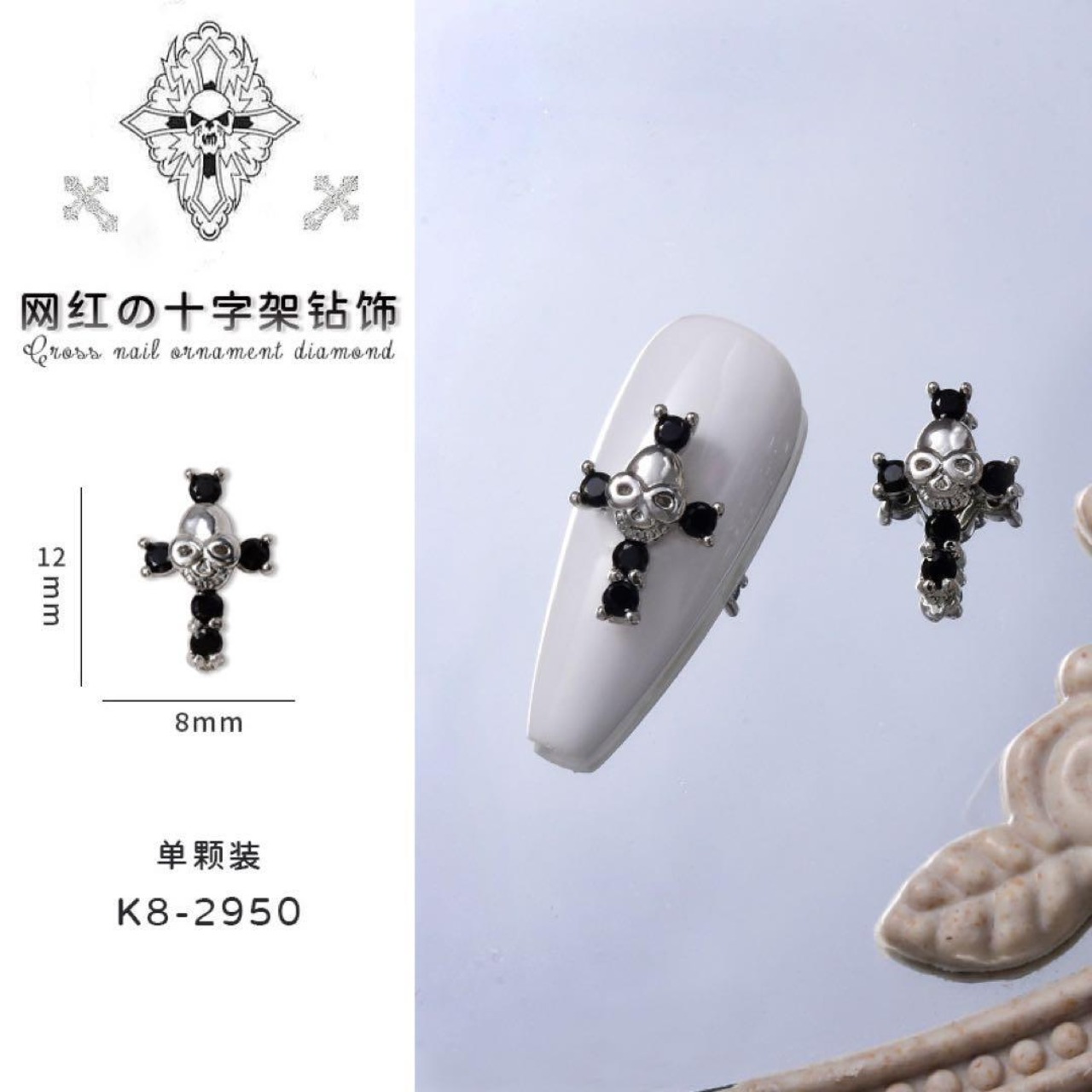 P659《1個》ネイルパーツ 十字架 クロス ドクロ スカル ロック 病み 黒