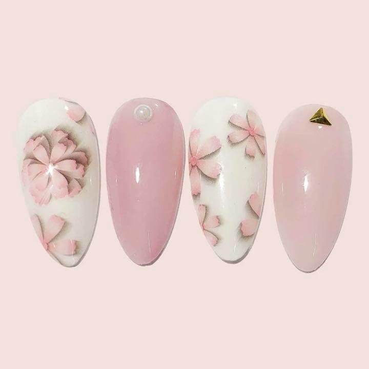 NT86《ネイルシール》花 花びら フラワー ニュアンス ピンク 手描き 時短