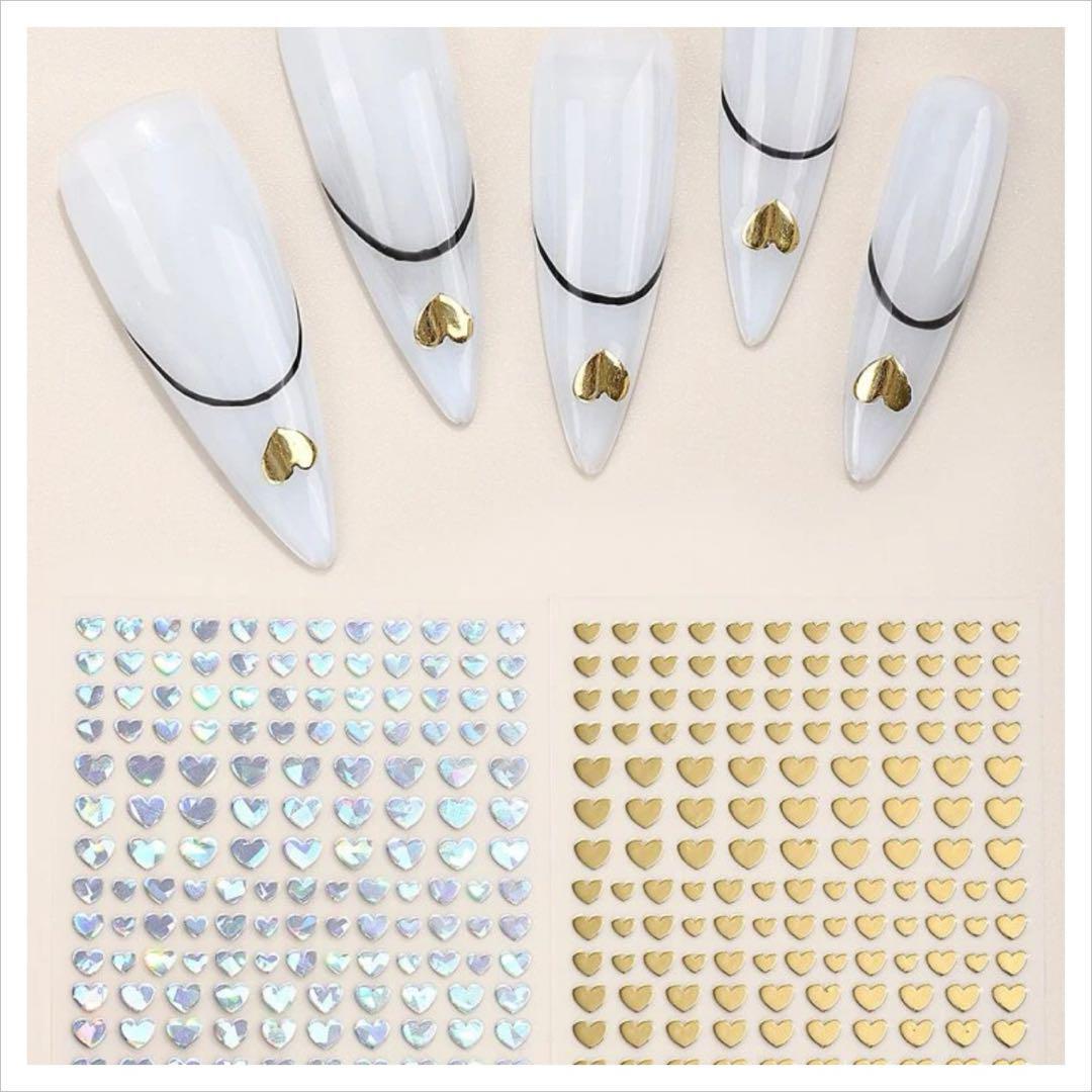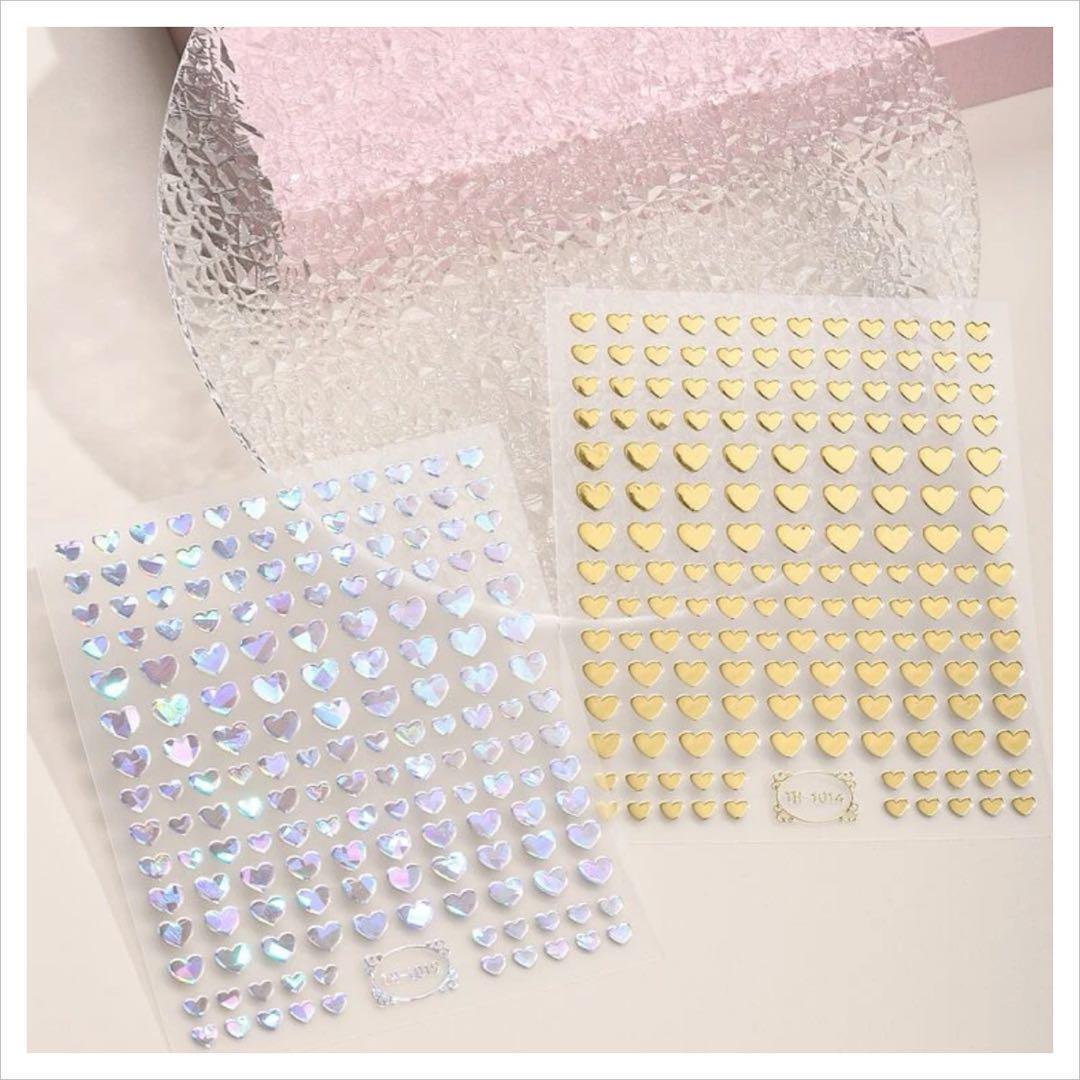 NT200《2枚》ネイルシール ハート ゴールド シルバー お得 時短 オーロラ