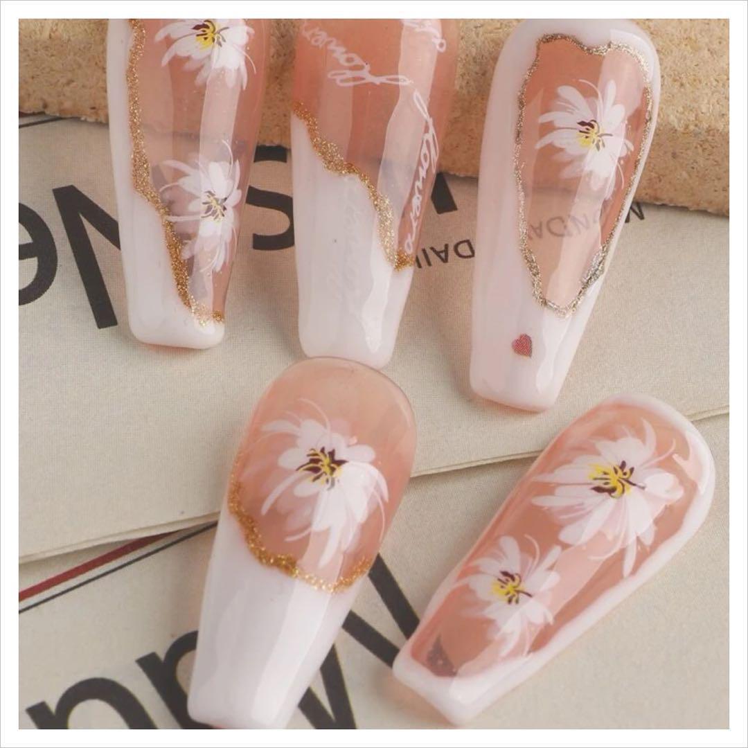 NT446《1枚》ネイルシール 白 花 フラワー 春夏 大人可愛い ニュアンス