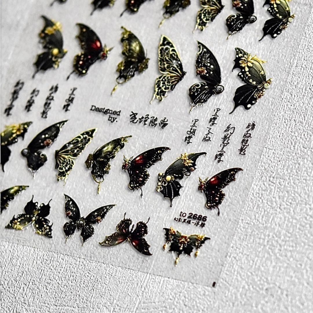 NT606 ネイルシール 蝶々 3D リアル 黒 金 バタフライ 成人式 ギャル