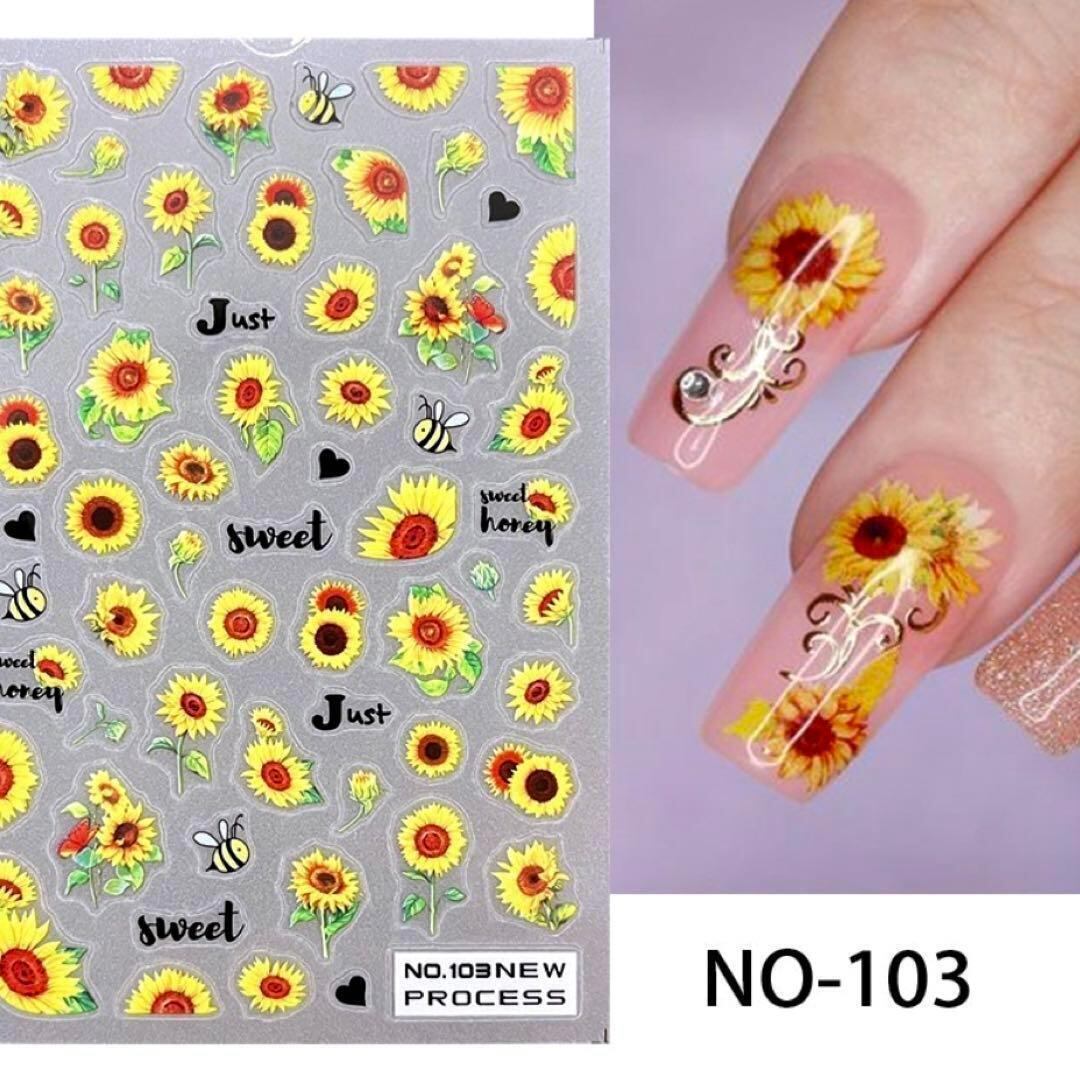 NT633 ネイルシール ひまわり 向日葵 お花 黄色 フラワー 夏 リアル