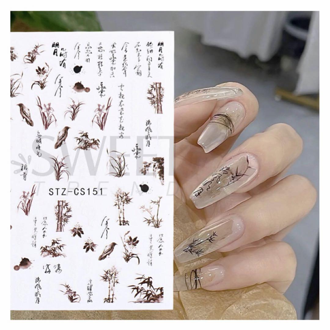 NT635 ネイルシール 竹 漢字 和柄 和風 日本画 成人式 笹 水墨画 中国