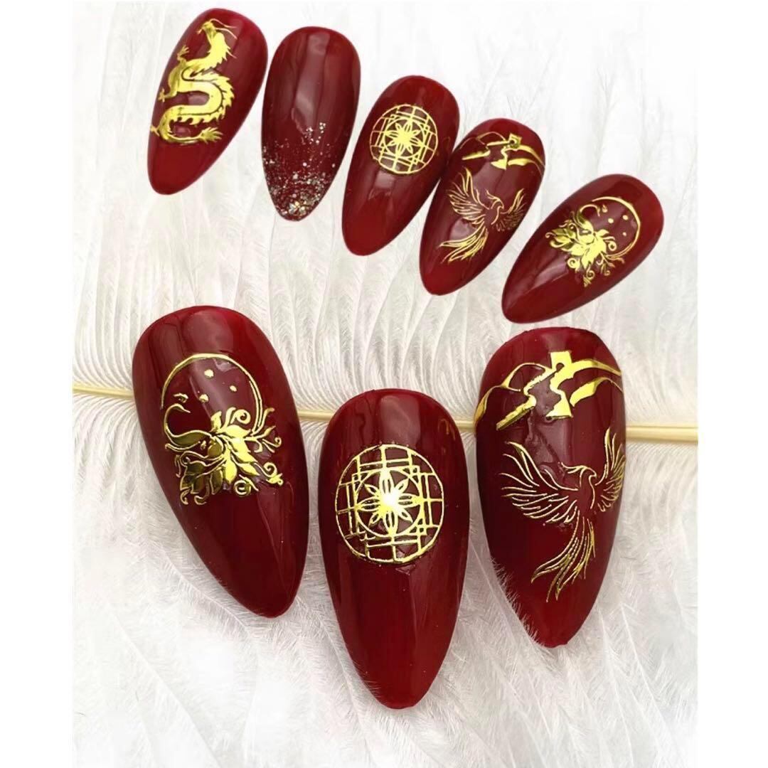 NT686 ネイルシール 龍 ドラゴン ギャル 成人式 いかつい 強め 中国 金